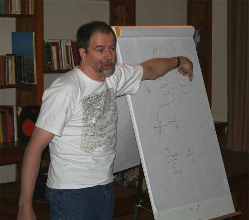 Morgan Jones at his lecture about the uses and abuses of transformers. Put the hammer away.